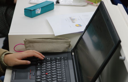 科目の学修は、必ず必修科目から先に学修を開始し、必修科目の学習がある程度進んでから、徐々にご自身の研究テーマに近い選択科目の履修をしていきます。入学後のオリエンテーションでは、大学院の担当教員が、みなさんの履修計画や今後の学修のすすめ方についてアドバイスをするために同席しますので、自分の研究テーマが本学で開講しているどの科目に近く、どの科目を履修すればよいかを相談しながら履修することができます。