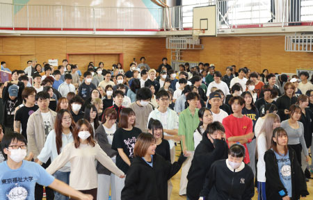 2年生~4年生の学生の有志もチームリーダーや進行役としてイベントをサポート。1年生の盛り上げ役としてがんばっている様子が見られました。そのおかげか1年生はみな、白熱する中にも楽しそうに競技に参加していました。