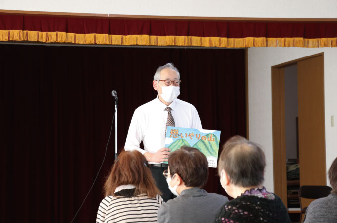 校長時代には小学校の朝礼や地域の幼稚園や保育園での読み聞かせで長年児童に親しまれてきました。現在、『思いやりの山』は中学生有志が歌詞をつけて歌が生まれ、動画となってYoutubeでも配信されています。
