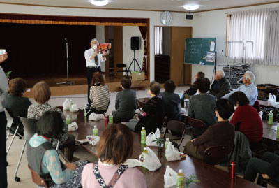 伊勢崎キャンパス教育学部の垣崎授二特任教授が市内の住民センターで定期的に開かれているミニデイサービスの交流会に招待され、地域のご高齢の方に紙芝居を朗読しました。
