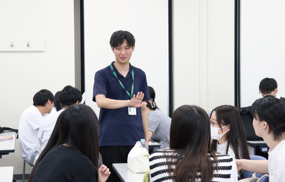 続いて、「身近な社会を考えよう」とのテーマで群馬県をより良くするためにはどうするべきか、交通・福祉・教育・観光等の観点からグループディスカッションを行いました。中には県外出身の学生もいましたが、メモをとりながらグループごとに熱く議論している様子が見られました。