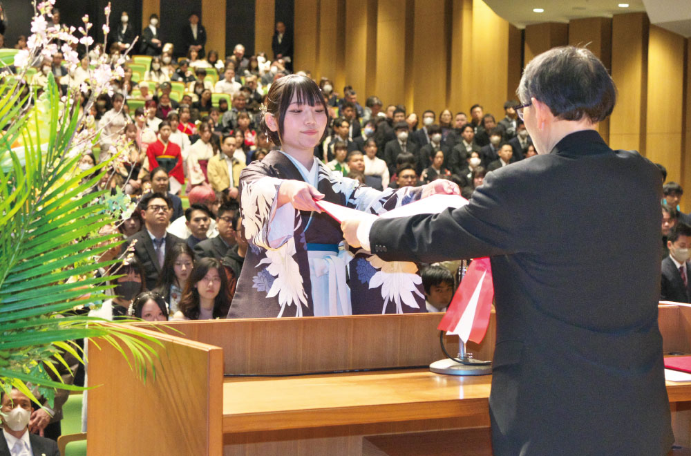 卒業生のみなさん、本当に卒業おめでとうございます。みなさんの大学生活はこれ終わりますが、大学はみなさんの今後の活躍をお祈りし、支援いたします。